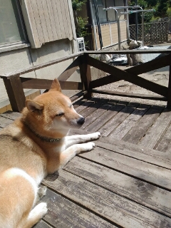 にも関わらず、何故だか柴犬さくらは、日光浴。