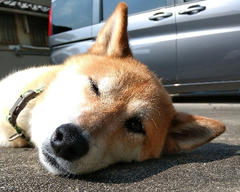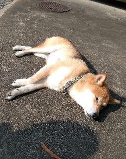 のぞき込んでみると、もうあかんなお顔の柴犬さん。