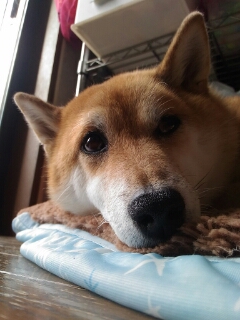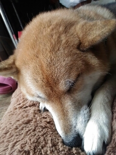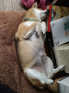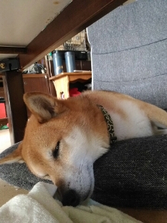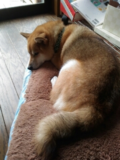 朝の散歩から帰ると寝る。お昼は場所を変えてのびのびと寝る。ゆう方の散歩から帰ると寝る・・・