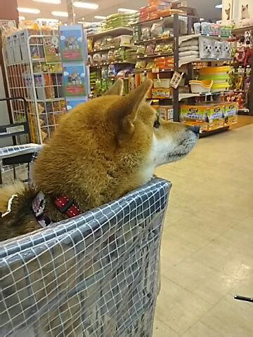 買物へ行くと、小型犬はカートに乗っている姿をみたことはあるのですが、うちの2柴意外で、