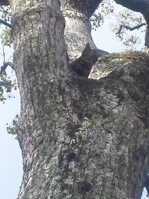 猛スピードで追いかけた所、木の上に籠城したようです。