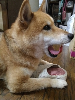 私は枕が無くても、どこででも寝られるので苦労しませんが、もしかしてさくらさんは、ママさんのスリッパで、何かいたずらでもしようかと考えてたんでは!!