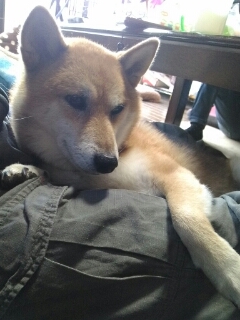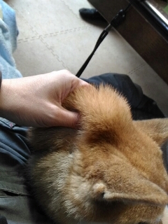 付き合わされる柴犬さくら