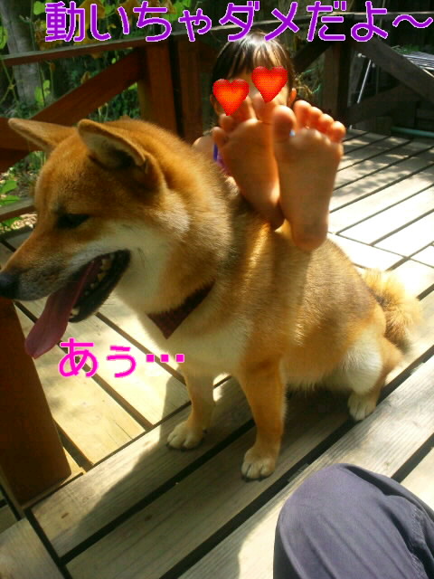 ウッドデッキで、blog用の写真写してると、娘の魔の手が…