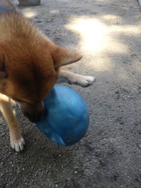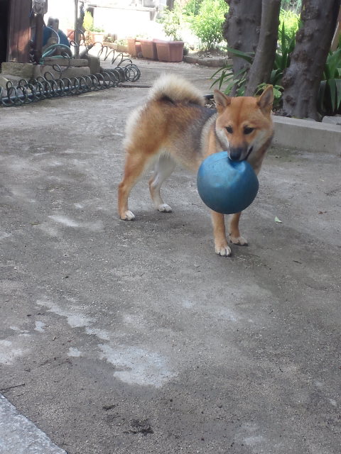 ボールをくわえて走る途中で、ボールを落としたさくらf^_^;