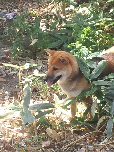 ボールをポイ捨てして、落ち葉の山へトコトコ行ってしまいました。