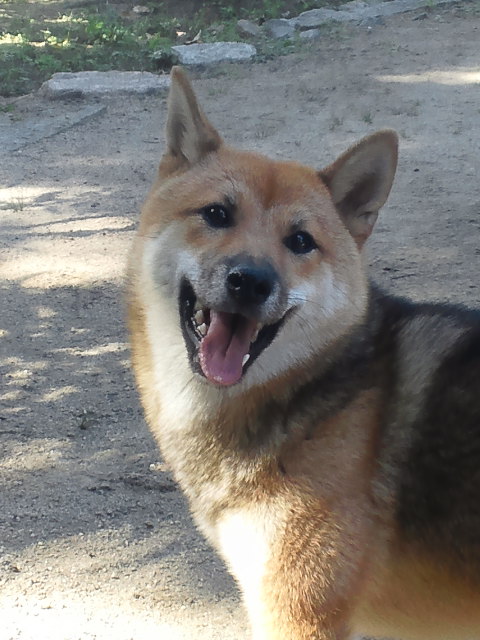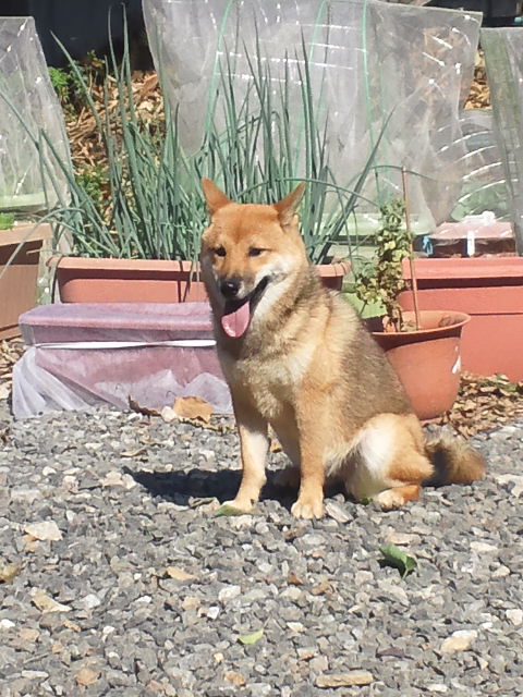最近、庭でも言うことを良く聞く柴犬さくら。