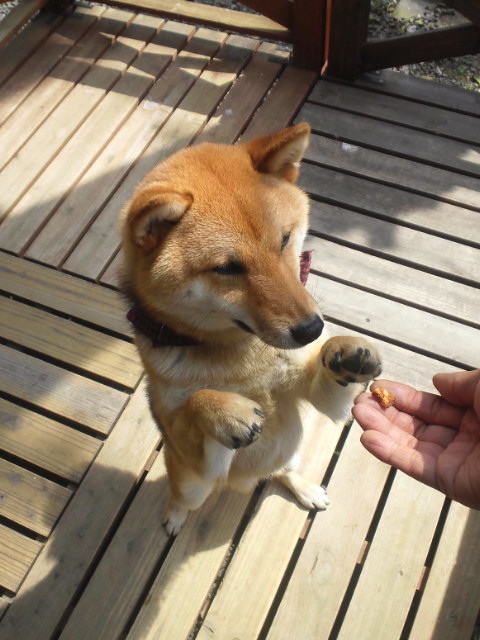 うちのさくらは、座って見つめたらもらえる…それでダメならフセしてみるかって感じですよ(笑)