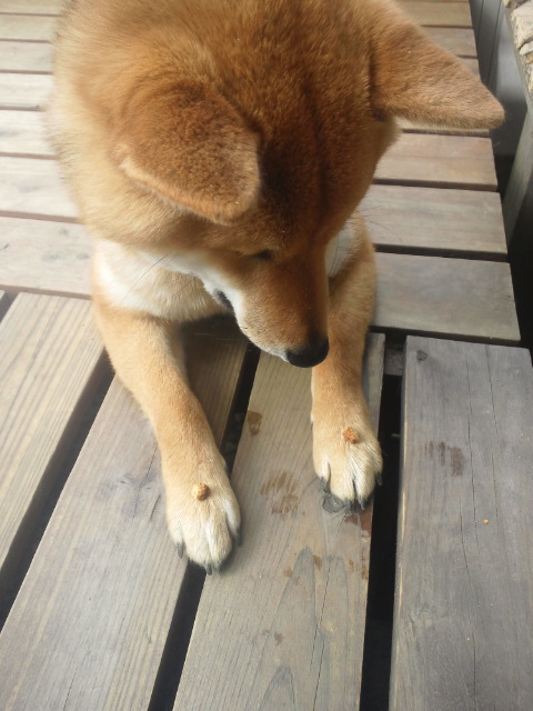巷のお利口柴犬さんがやってる「おやつの足乗せ」にチャレンジ( ̄∀ ̄)