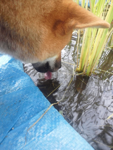 遊んで、訓練して喉が渇くとブルーシート水田で水分補給。