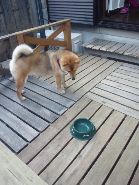さくらも、庭で遊んでたのに、盛り付けが終わった途端にウッドデッキでスタンバイ…