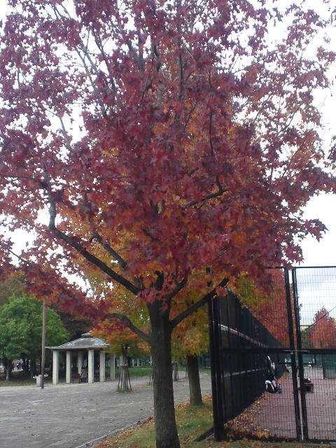 深北緑地は、紅葉で赤くなってます。