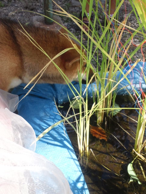 ブルーシート水田で水飲みます。