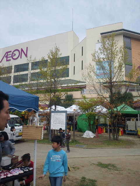 建物の間にある広場では、フリーマーケットが開かれていました。