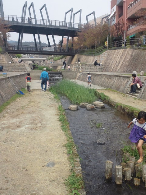 食後、建物の間を流れる川に向かいます。