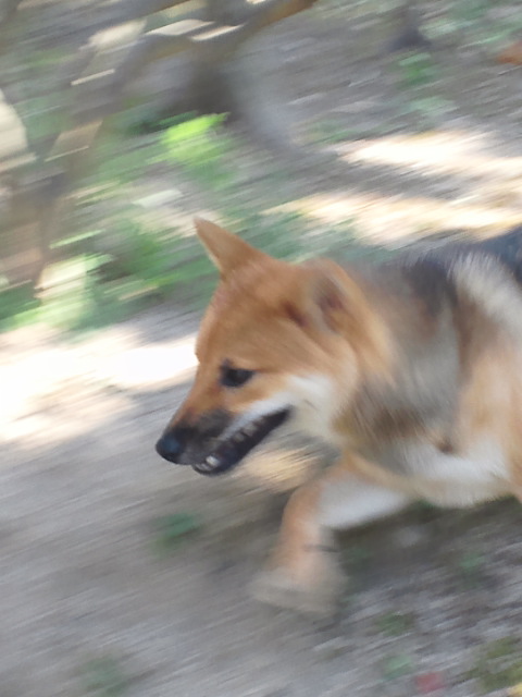クンクン、ぱくっと葉っぱや枝をくわえて走りますf^_^;