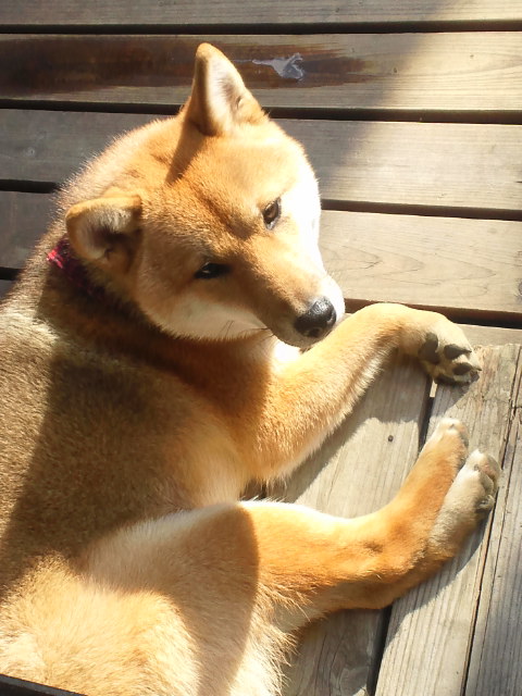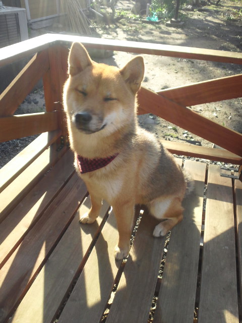 柴犬 さくら ウッドデッキにて…
