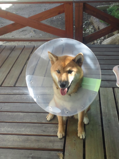 エリザベスカラーが、パラボラアンテナか太陽の塔みたいですf^_^;