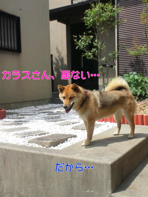 カラスを追っ払うのではなくて、おこぼれが欲しかったのかぁ、さくらちゃん。かわいい。