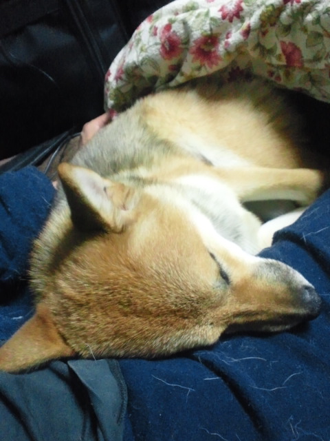 昼間は、ガウガウおてんば娘の柴犬さくらですが…