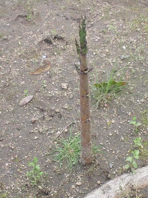 庭に出てきた食えないタケノコ…