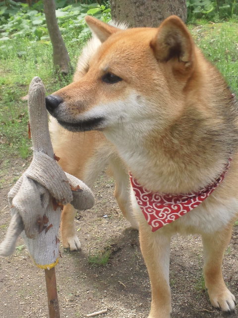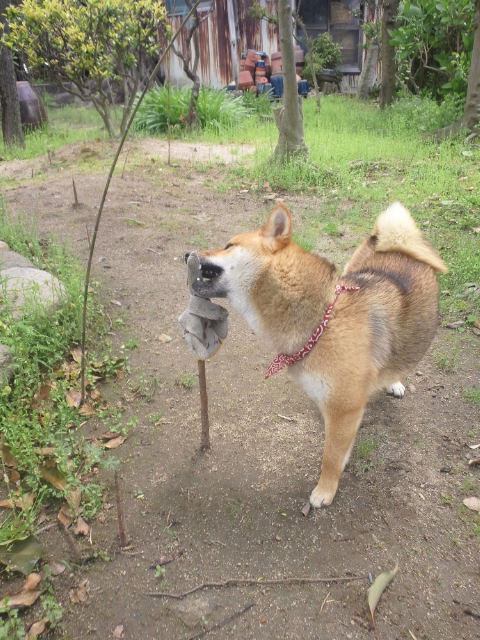 軍手には目が無い柴犬さくら。