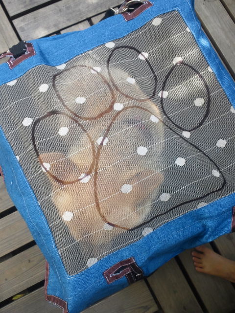 ドライビングボックスにおとなしく入ってますね。どこかに連れて行ってもらえるかなと思ってるのかな?