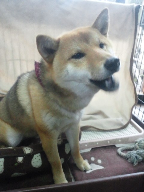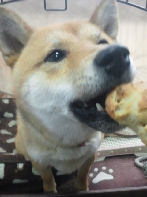 焼けてから冷めるまで、待ちきれない様子だった柴犬さくら。