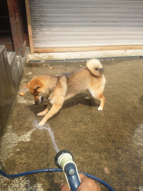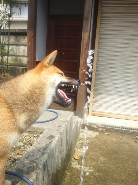 柴犬 さくら ホースの水は楽しいな♪