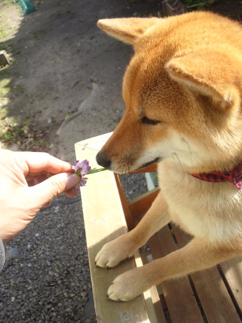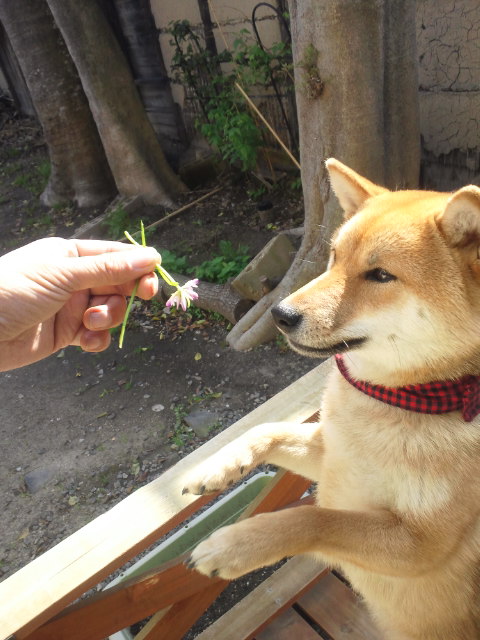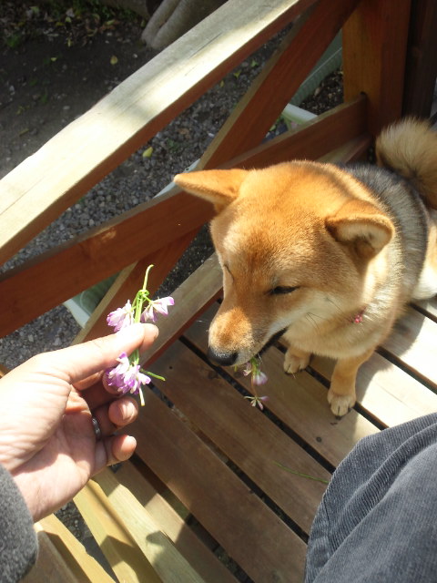 柴犬 さくら レンゲ草の花より花?
