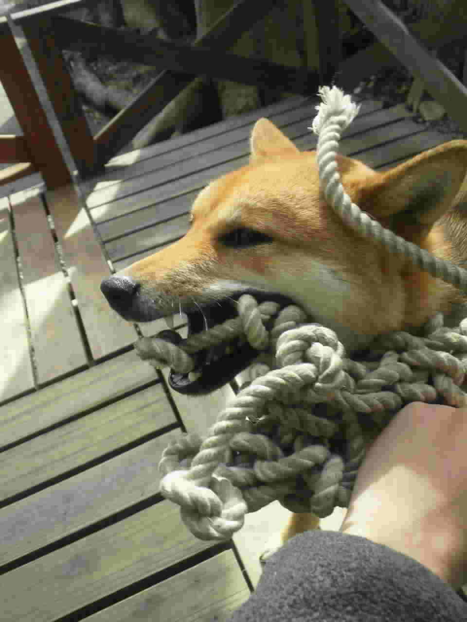 引っ張りっこ大好き柴犬さくらに