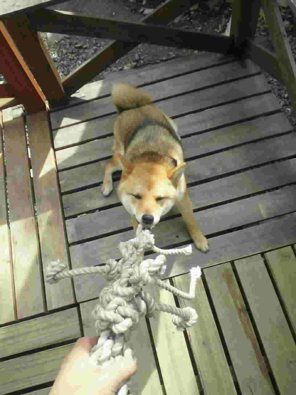 ロープ大好き柴犬さくらには、ロープ犬君が、良い友達みたいですね~( ̄∀ ̄)