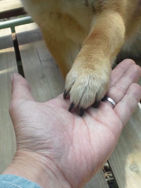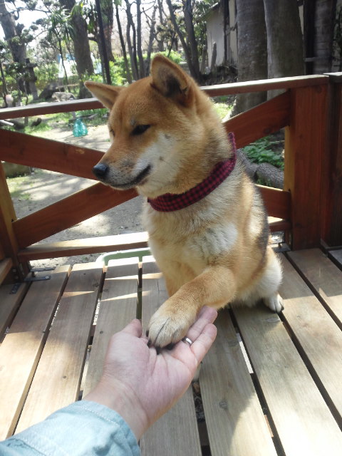 しかし、散歩の時などに出会うお方などは、必ずと云っていい程「お手」を要求されますね。
