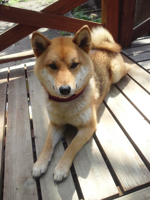 今更ながら、オテを仕込まれる柴犬さくらに、
