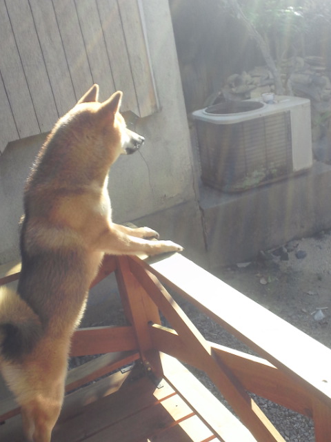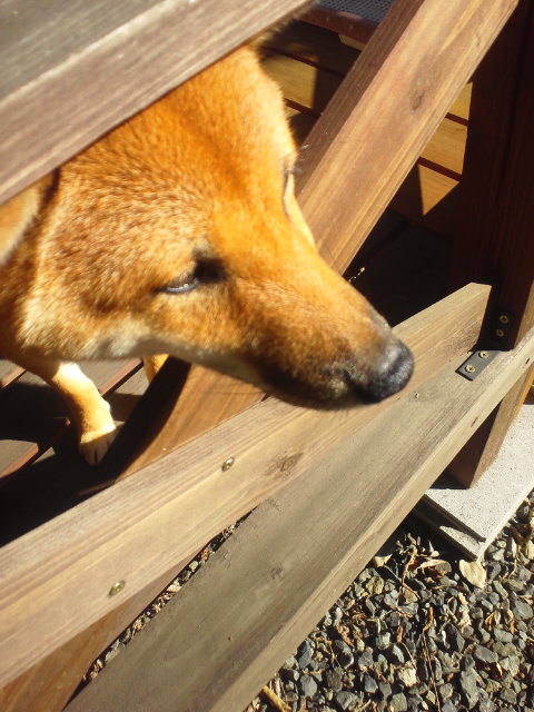 ウッドデッキの隙間から、ボールを落としてしまったみたいf^_^;