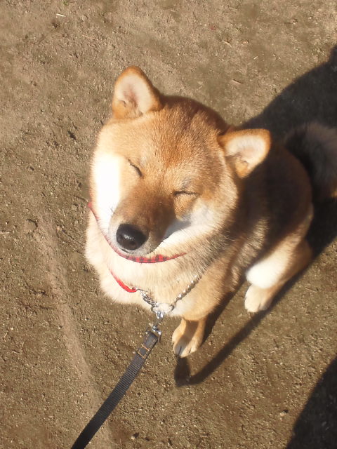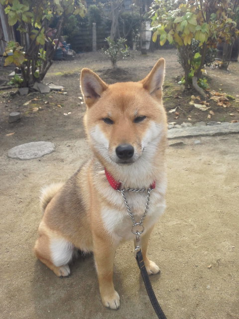 初めて首輪した柴犬さくら、不動柴になってしまいましたf^_^;