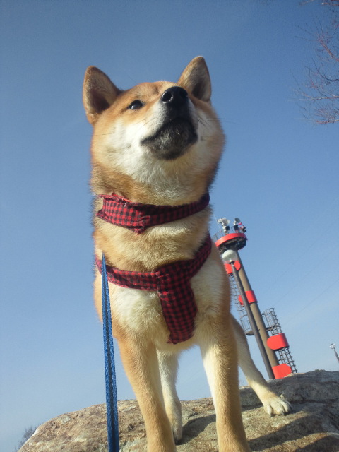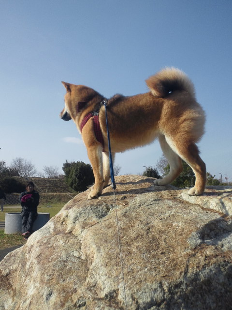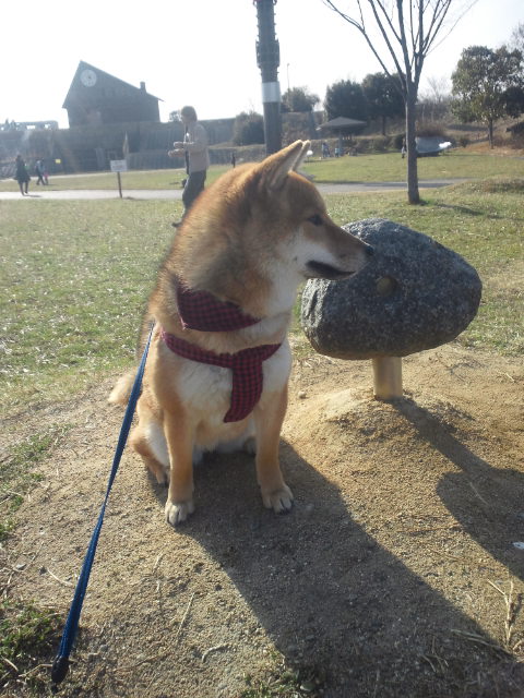 ランでは、ビビりまくり、遊具エリアではモデルをさせられた柴犬さくら。