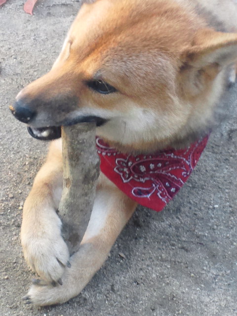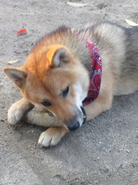 いくら柴犬さくらが必死に手で押さえていても、ワンコの手では限界があります。