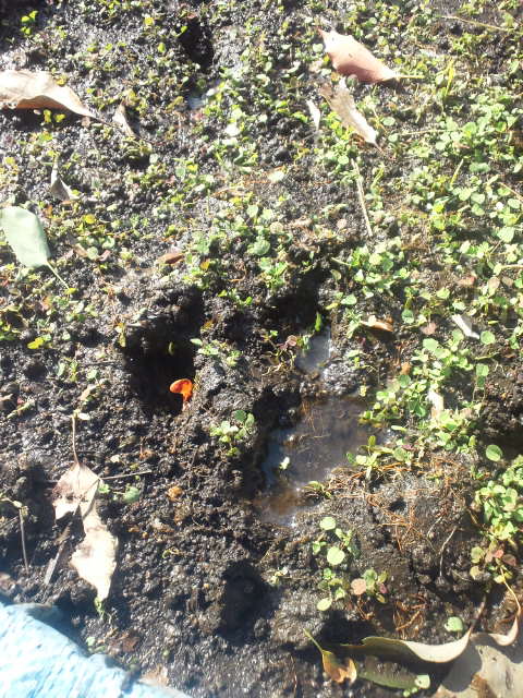 雨で緩んだブルーシート水田後のレンゲ草畑を横切って行ったんです(ToT)