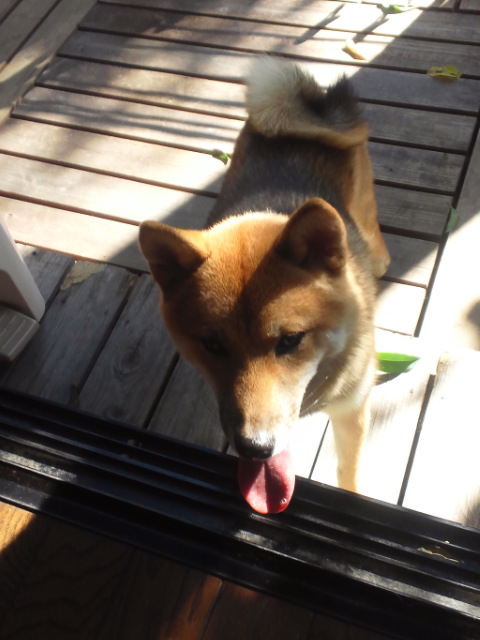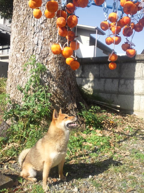 干し柿が食べたいけど、なかなか食べれない柴犬さくらに、