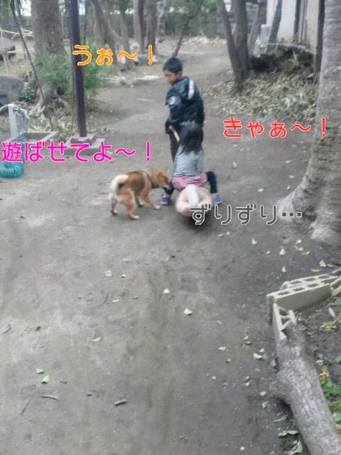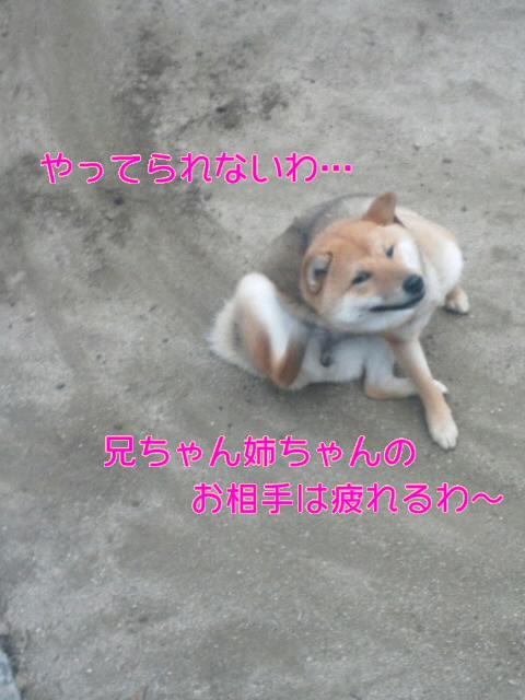 何時までたっても止まら子ども達に、根負けした柴犬さくらです。