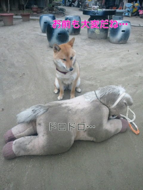 さくらも、庭中を引きずり回される馬さんに、ついて走り回ってました。
