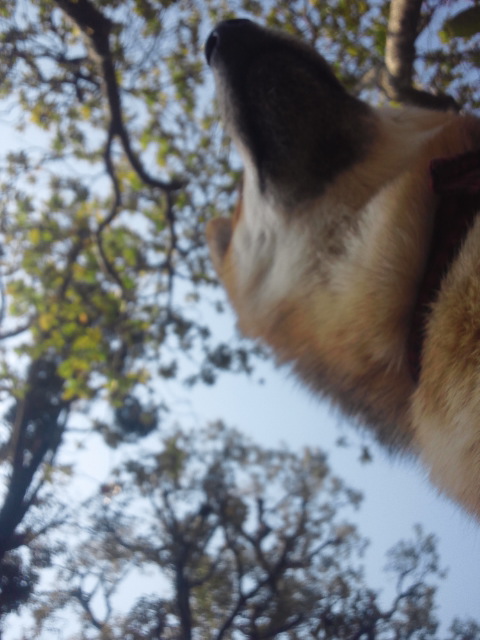 どうも、木の上のカラスが気になってるようです。