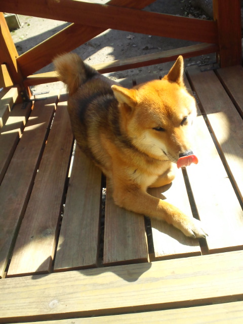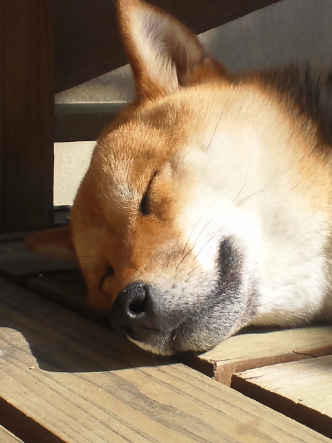 顔に日が当たって暑いのか、首を動かして微妙に日陰へ…