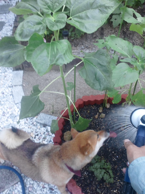 で、水やりが終わるとパパより素早くご帰還な柴犬さくら。