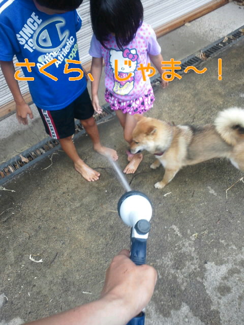 さくらちゃん、今日は暑いから水浴びしたほうがいいから、いっぱいかけてもらってね!
