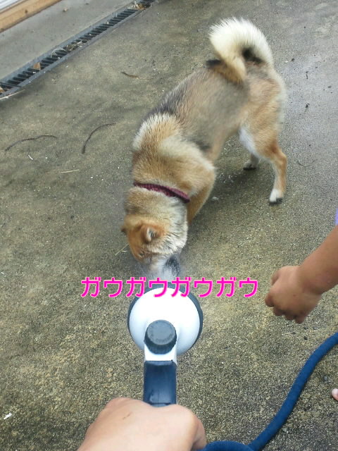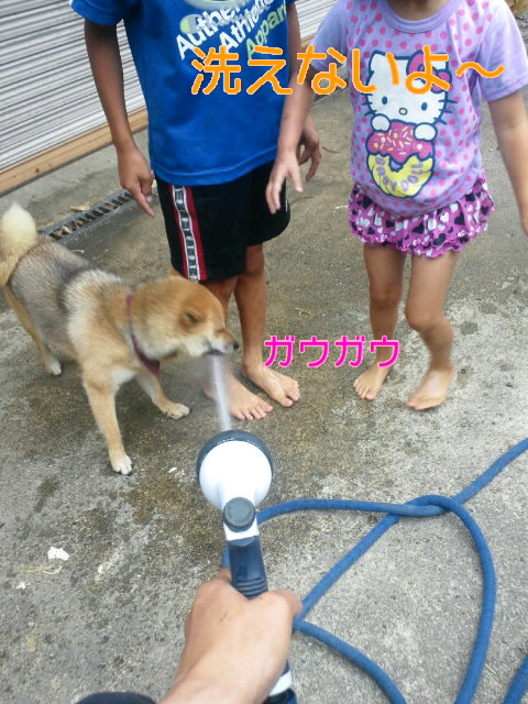 子供達が洗い終わっても、やる気満々の柴犬さくら