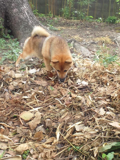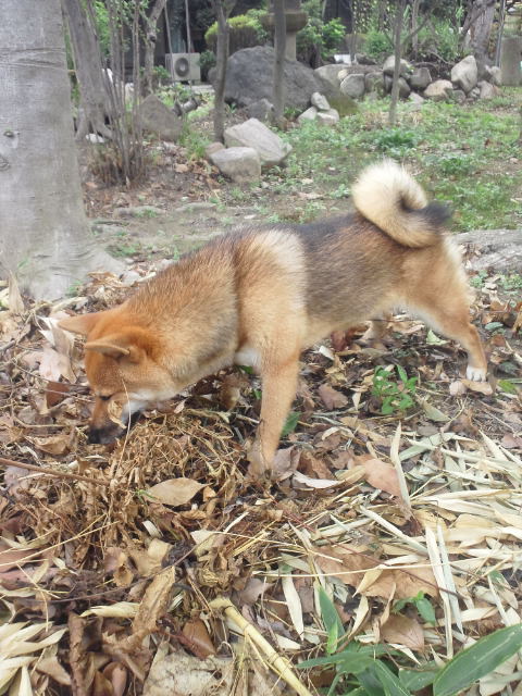 何だか長い事、落ち葉の山で闘っていた柴犬さくら。