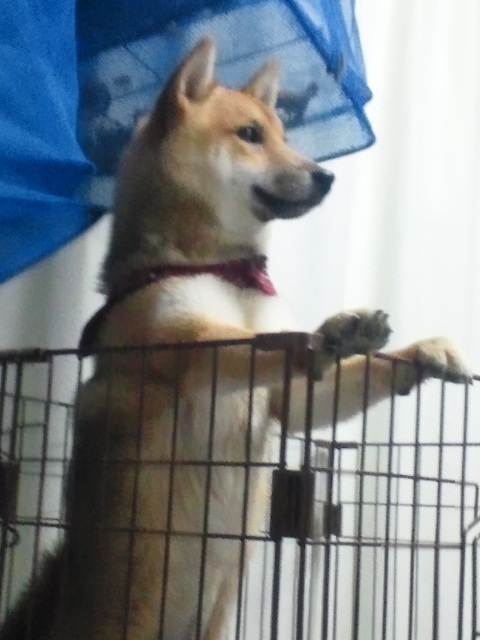 柴犬さくらは、立ち上がってキッチンをガン見f^_^;