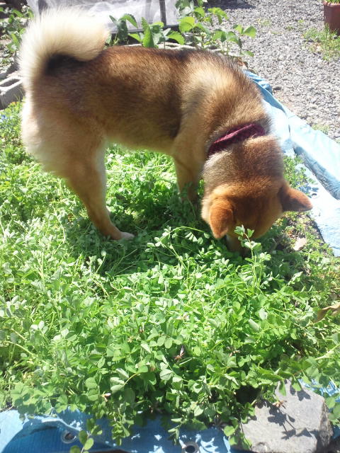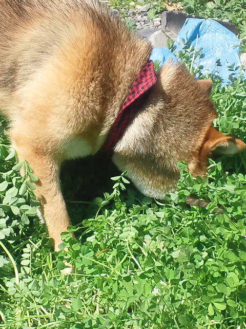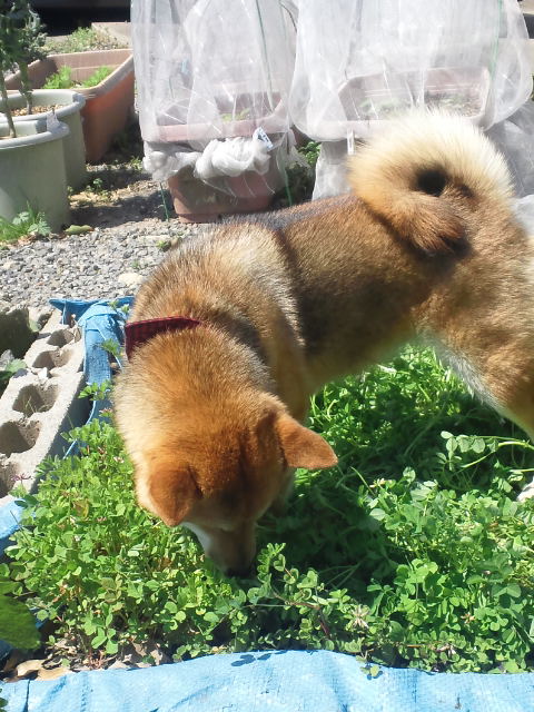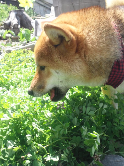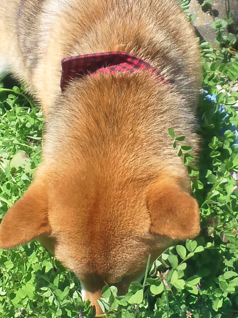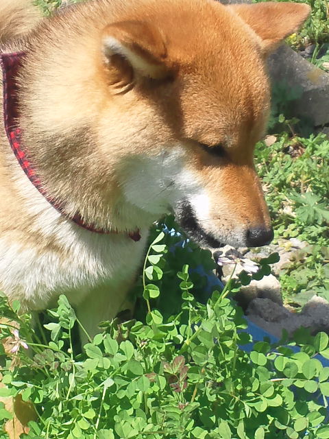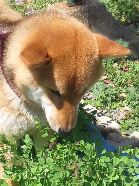 レンゲ草の味を知ってしまった柴犬さくらに